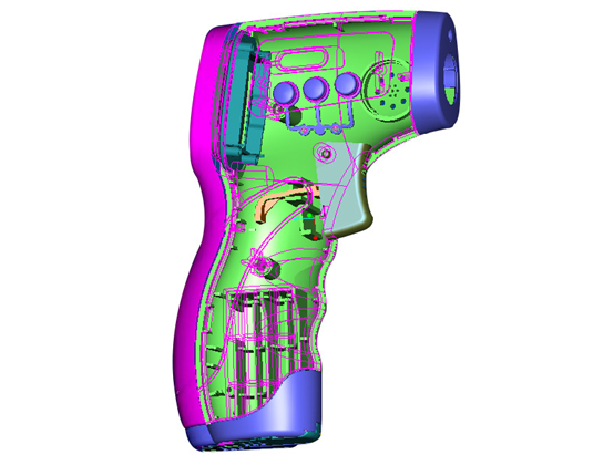 在體溫槍外殼塑膠制品的諸多制造工藝中,最主要的就是注塑成型,而在注塑成型工藝中,最關(guān)鍵、最核心的部分就是體溫槍塑膠模具的設(shè)計和開發(fā)。