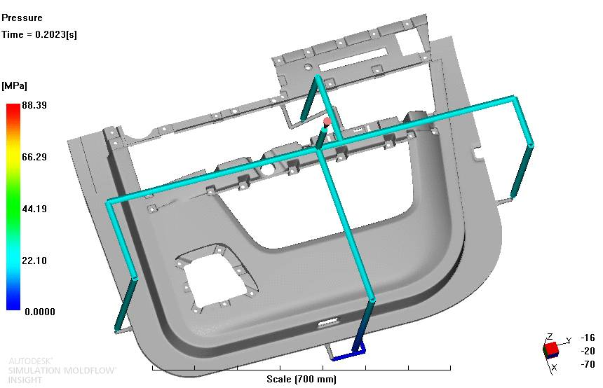 順序閥熱流道控制技術(shù)(SVG技術(shù))是一種新型級式控制的熱流道技術(shù),通過油缸控制按順序進膠,解決了傳統(tǒng)多點同步進膠的產(chǎn)品出現(xiàn)外觀缺陷的難題??捎行П苊馄噧?nèi)外飾件出現(xiàn)熔接痕,氣穴等缺陷,減少流長,降低成型壓力,在外觀要求嚴格的汽車內(nèi)外飾件上發(fā)揮了巨大的作用。