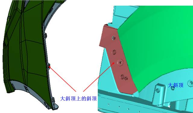 此側(cè)倒扣采用斜頂上斜頂?shù)慕Y(jié)構(gòu):
